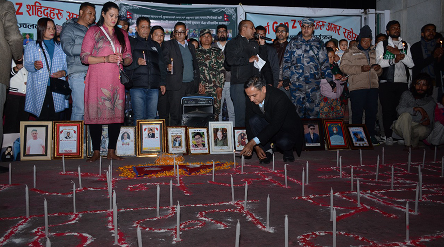 काठमाडौं । जेनजी शहीदहरूको सम्झनामा दीप प्रज्वलन गरिएको छ । मंगलबार साँझ संसद् भवन अगाडि जेनजी शहीदको स्मरणमा दीप प्रज्वलन गरिएको हो । शहीद परिवार, घाइते परिवार लगायतका युवाहरूले दीप प्रज्वलन गरेका हुन् ।