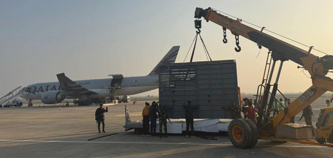 चितवन,०३ पुस । नेपालमा जन्मे–हुर्केका दुई हात्ती रूद्रकली र खगेन्द्रप्रसादलाई बुधबार राति कतार एयरको चार्टर जहाजमार्फत दोहा पठाइएको छ। यो नेपालले इतिहासमा पहिलो पटक अन्य देशलाई हात्ती उपहार पठाउनु हो।