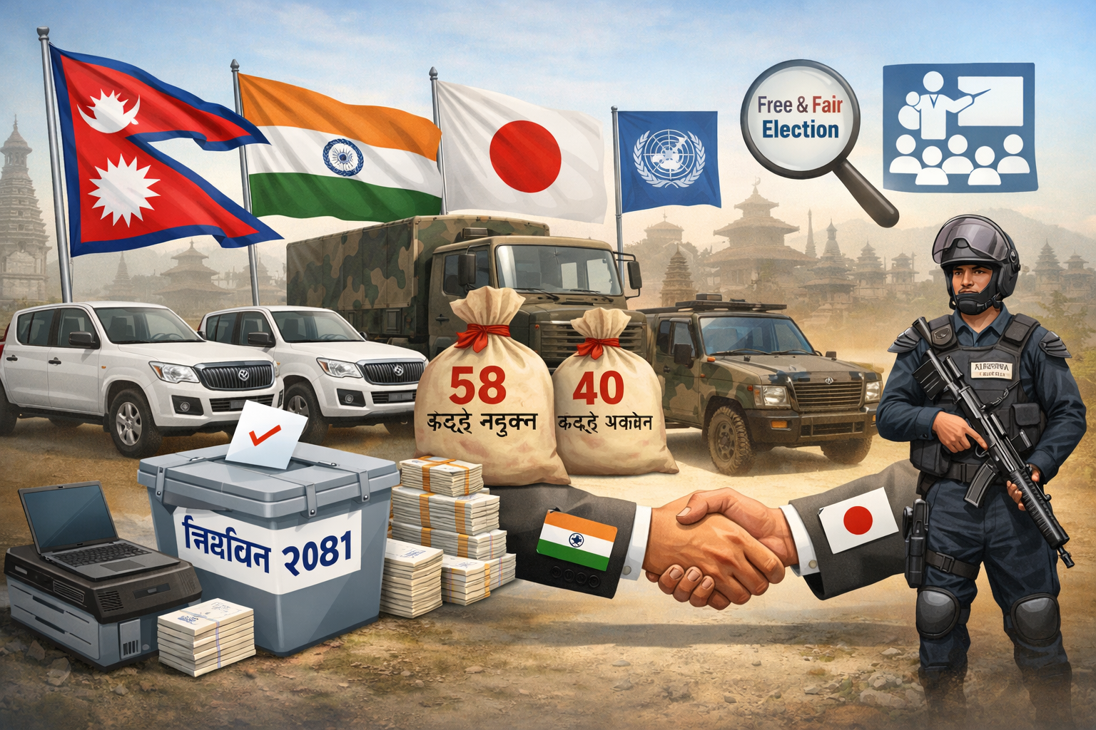 भारतले ७ माघ २०८१ मा पहिलो चरणमा ६० वटा भ्यान हस्तान्तरण गरेको थियो भने १६ माघ २०८२ मा दोस्रो चरणअन्तर्गत २५० वटा क्याबिन पिकअप भ्यान उपलब्ध गराएको थियो । अर्थ मन्त्रालयका प्रवक्ता टंकप्रसाद पाण्डेयका अनुसार क्याबिन पिकअप भ्यानहरू आइसकेका छन् भने निर्वाचन सुरक्षामा प्रयोग गर्न मिल्ने ठूला जालीसहितका ट्रक आउन बाँकी छन् । यसैगरी, जापान सरकारले निर्वाचनका लागि ४० करोड रुपैयाँ सहयोग उपलब्ध गराउने भएको छ । जापानले विभिन्न परियोजनाका लागि उपलब्ध गराएको तर खर्च हुन नसकेको रकमलाई निर्वाचन प्रयोजनका लागि अनुदानस्वरूप उपलब्ध गराउने तयारी गरेको हो ।