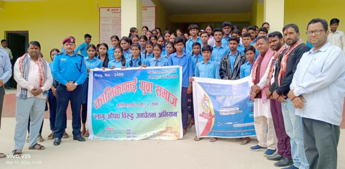बीरगंज,२९ फागुन । कालिकामाई युवा समाजको आयोजनामा तथा इलाका प्रहरी कार्यालय पोखरियाको सहकार्यमा “लागू औषध विरुद्ध जनचेतना अभियान” सम्बन्धि कार्यक्रम शुक्रबार कालिकामाई गाउँपालिका वडा नं. १ मुडलीमा सम्पन्न भएको छ।