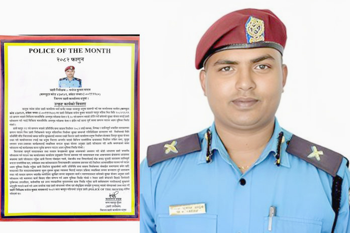 उत्कृष्ट कार्यका लागि मनोज यादव धनुषामा ‘पुलिस अफ द मन्थ’ घोषित